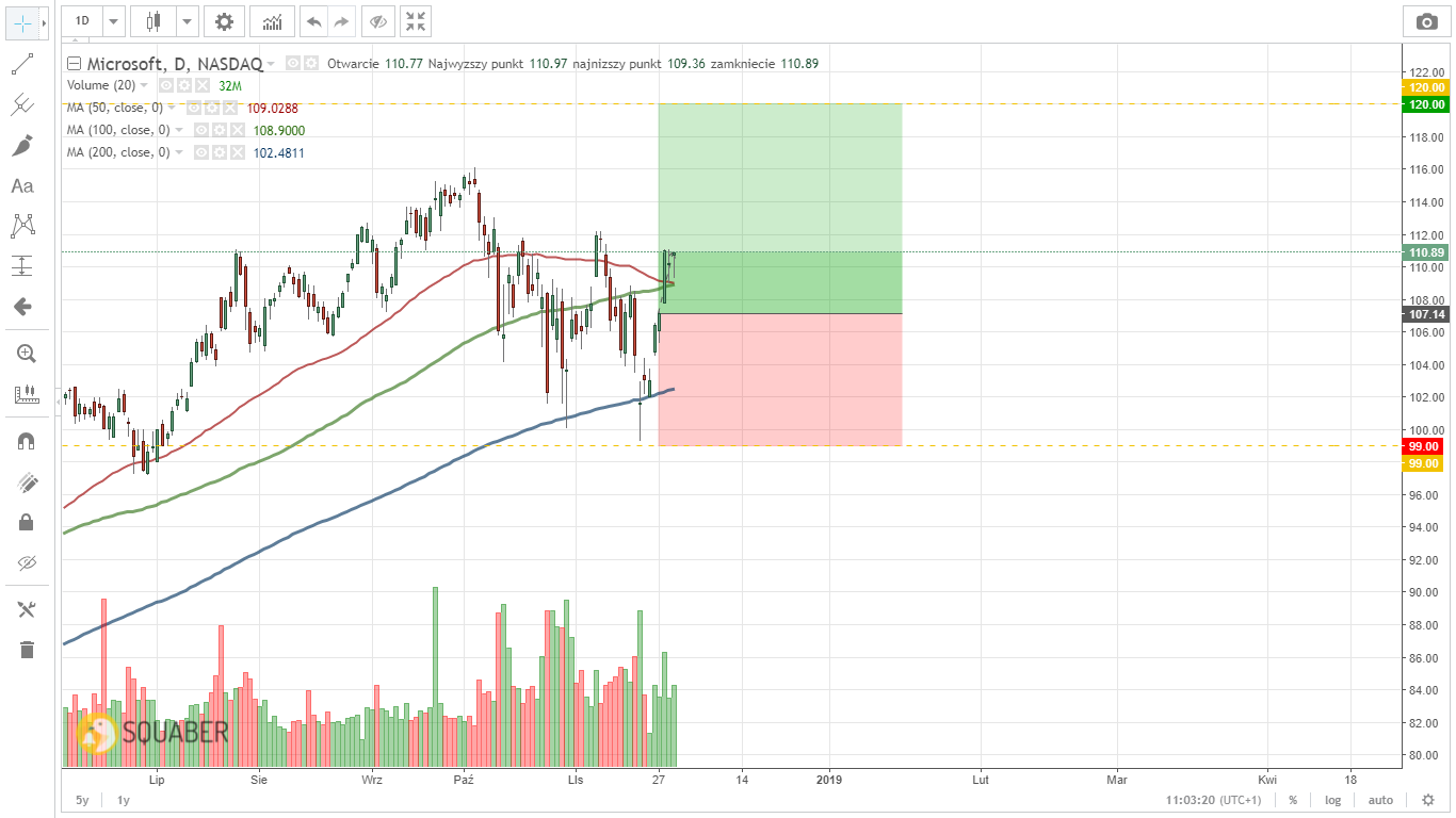 Dla wąskich poziomów Stop Loss na takim rynku widzieliśmy co się stało dla sygnału na Netflixie. Naszym zdaniem lepiej było stanąć z boku i powrócić na rynek w lepszym momencie. Dodatkowo, powrót ten został wzmocniony lekką zmianą profilu spółek, które nas zainteresowały. W sygnałach z tego tygodnia i zapewne w kolejnych wzięliśmy pod uwagę spółki o nieco innym (mniej ryzykownym) profilu, który wynika albo z sektora, w którym one operują, albo z analizy historycznego zachowania tych walorów. Mowa tutaj o 3 następujących spółkach – Sempra Energy, Microsoft i Berkshire.