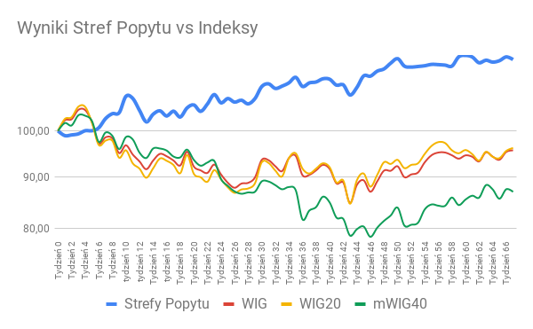 Strata portfela Strefy Popytu w 67 tygodniu wyniosła -0,62%, która jest bardzo zbliżona do wyniku na indeksie mWIG40 Tutaj znajdziesz listę 53 spółek, które spełniają warunki Strategii „Strefy Popytu”
