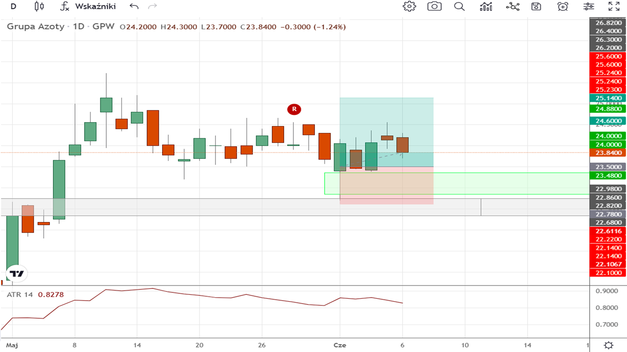 Zabezpieczenie zysku na akcjach Grupy Azoty S.A. (ATT:GPW) za pomocą wskaźnika ATR.