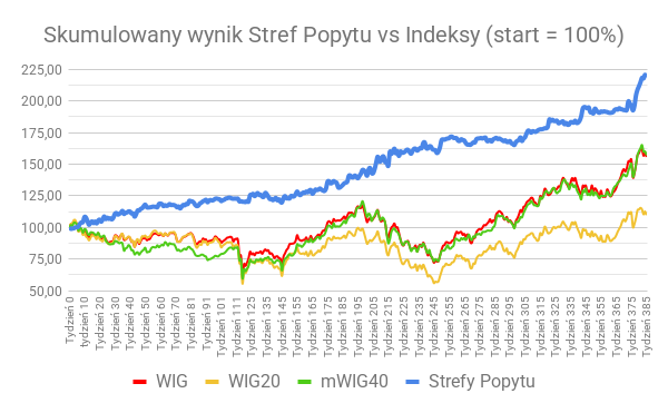 385. tydzień Stref Popytu przyniósł 6 sygnałów reakcji na strefę popytu Squabera. Aż 5 z nich zostało wykorzystanych do przeprowadzenia transakcji kupna. Akcje Kęty S.A. (KTY:GPW) i Orlen S.A. (PKN:GPW), z którymi rozpoczynaliśmy tydzień, opuściły portfel, przynosząc zysk.