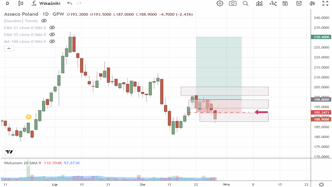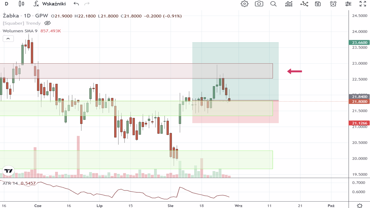 397. tydzień Stref Popytu przyniósł 3 sygnały reakcji na strefę popytu Squabera. Tylko jeden z nich zostały wykorzystany do przeprowadzenia transakcji kupna. Akcje Zabka Group S.A. (ZAB:GPW) oraz Asseco Poland S.A. (ACP:GPW), z którymi rozpoczynaliśmy tydzień, opuściły portfel, przynosząc odpowiednio zysk i stratę.