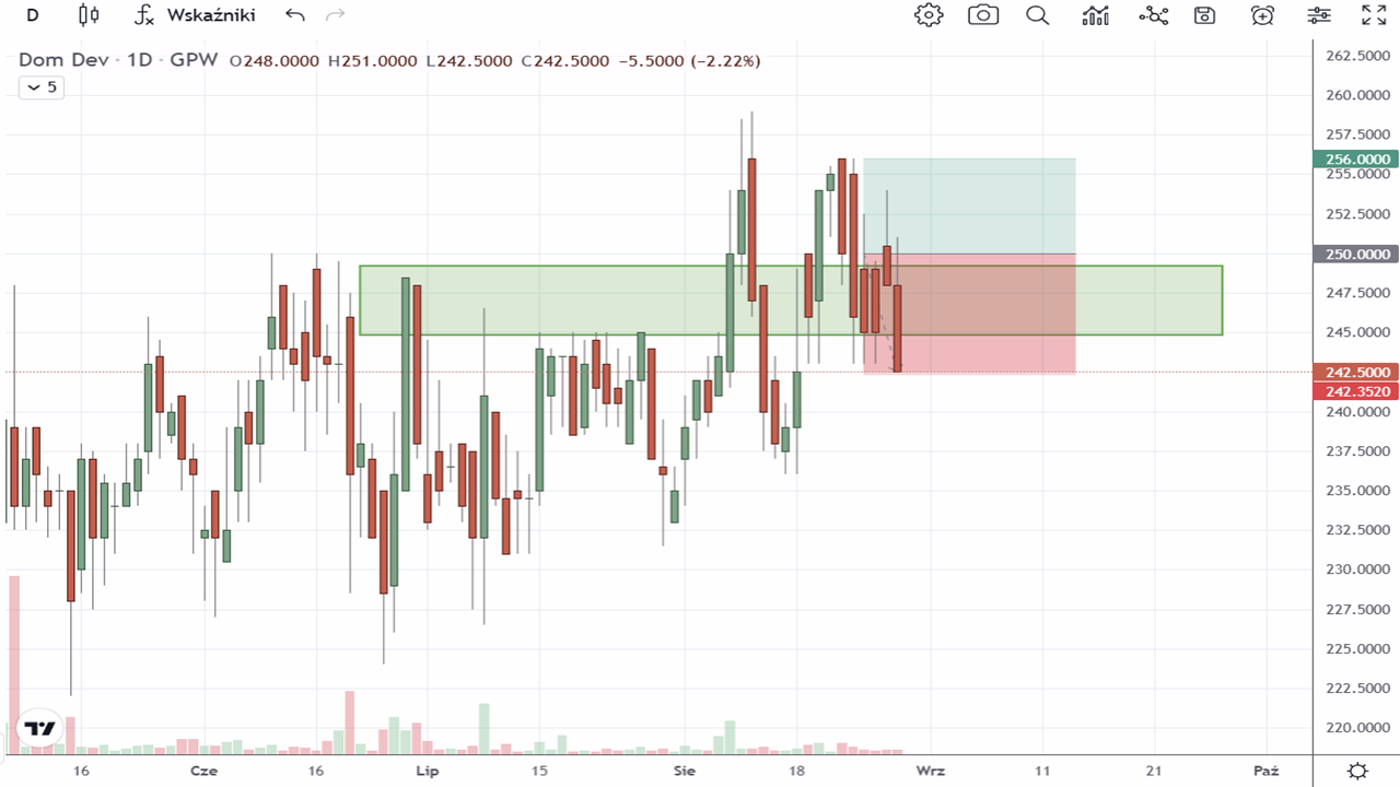 Brak transakcji na akcjach Dom Development S.A. (DOM:GPW) z uwagi na zbyt niski stosunek zysku do ryzyka (RR).