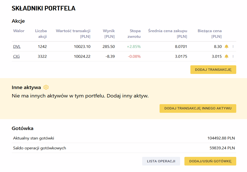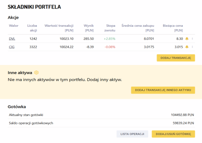 W nadchodzący tydzień wchodzimy, posiadając w portfelu następujące akcje:
