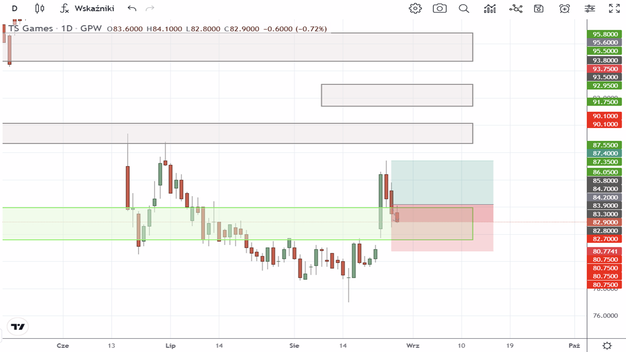 Brak transakcji na akcjach Ten Square Games S.A. (TEN:GPW) z uwagi na zbyt niski stosunek zysku do ryzyka (RR).