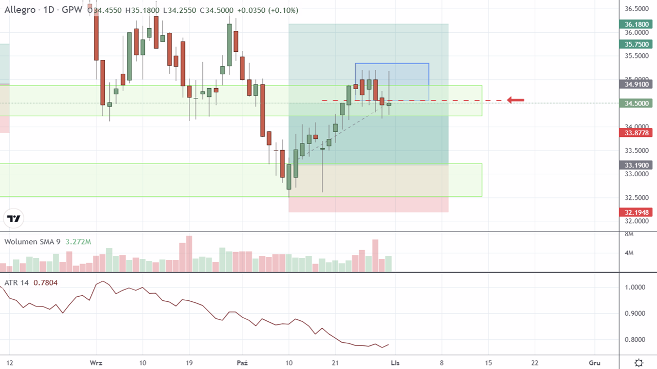 Brak transakcji na akcjach Allegro S.A. (ALE:GPW) z uwagi na posiadanie akcji w portfelu.