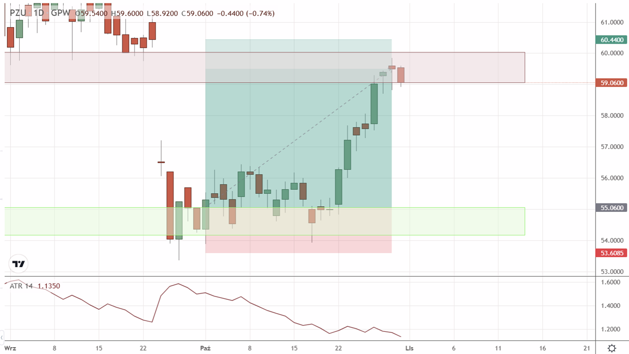 Sprzedaż akcji PZU S.A. (PZU:GPW). Zamknięcie pozycji z powodu aktywacji strefy podaży Squabera. Transakcja przyniosła 7,19% zysku po 29 dniach.
