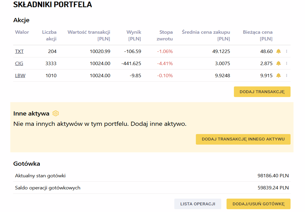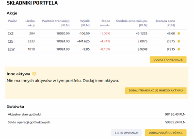 W nadchodzący tydzień wchodzimy, posiadając w portfelu następujące akcje: