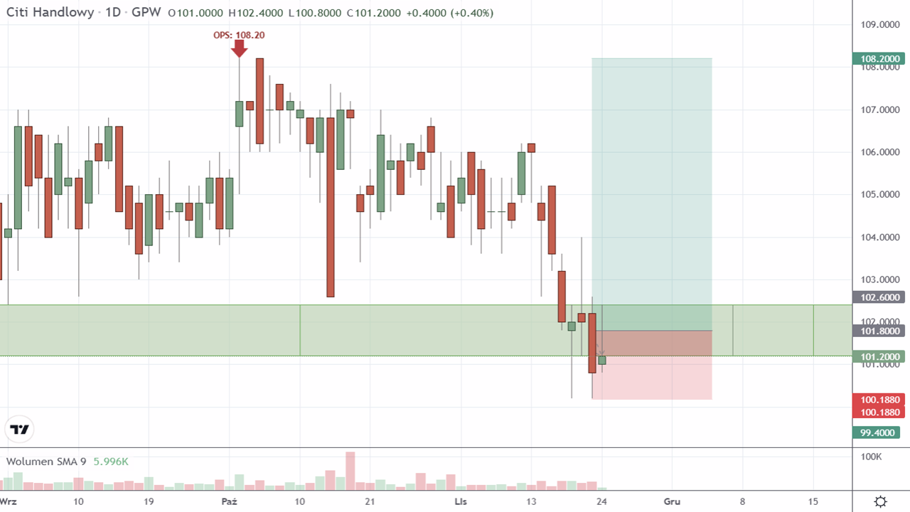 Zrzuty ekranu poniżej przedstawiają transakcje naniesione na wykresy. Na początku 2025 roku zdecydowaliśmy się na pokrycie naszą Strategią wszystkich spółek należących do indeksu WIG20 oraz mWIG40. Jeżeli interesuje Cię strategia Stref Popytu, wiec informacji we wpisie- link.