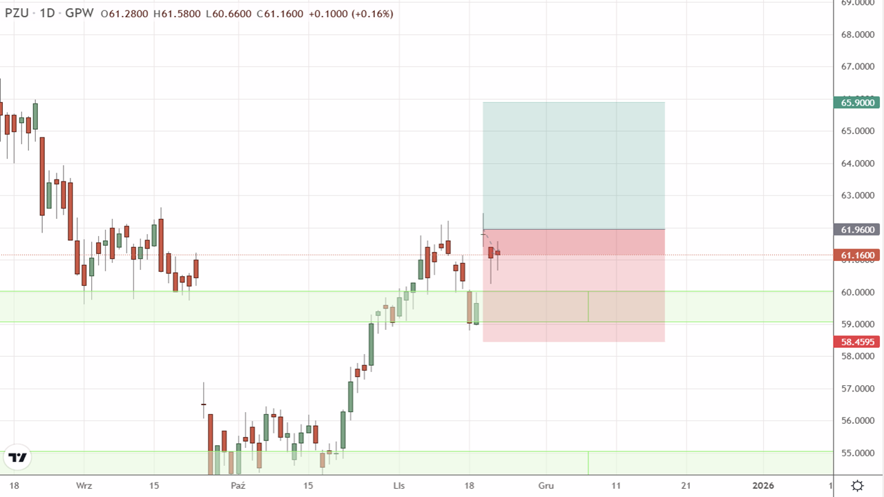 Brak transakcji na akcjach PZU S.A. (PZU:GPW) z uwagi na zbyt niski stosunek zysku do ryzyka (RR).