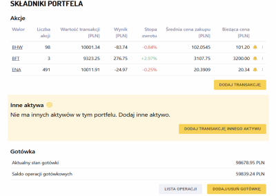 - Enea S.A. (ENA:GPW) – pozycja prowadzona bez zmian