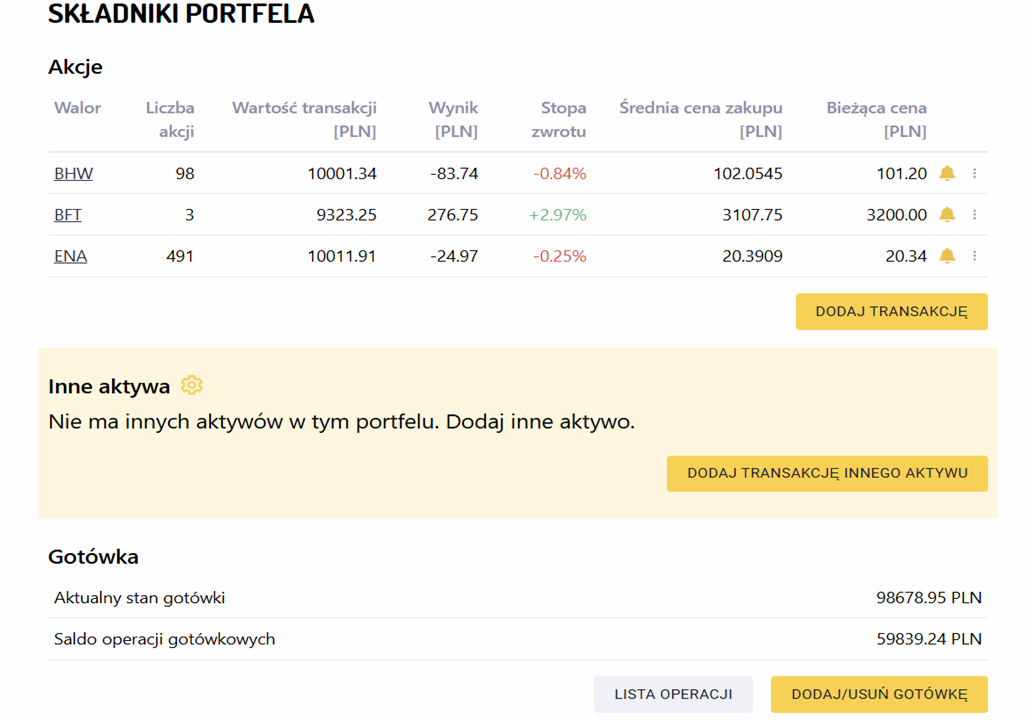 W nadchodzący tydzień wchodzimy, posiadając w portfelu następujące akcje: