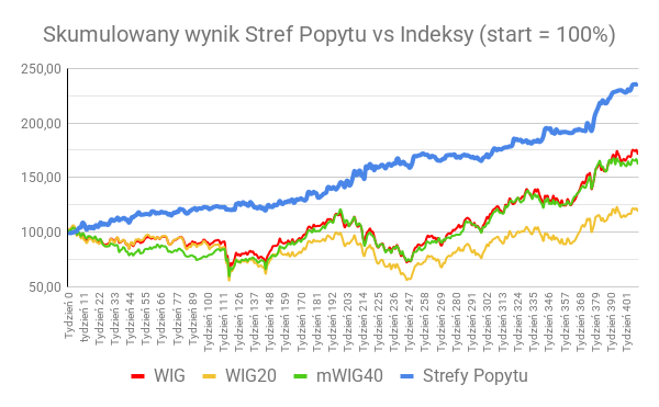 409. tydzień Stref Popytu przyniósł 5 sygnałów reakcji na strefę popytu Squabera. Trzy z nich zostały wykorzystane do przeprowadzenia transakcji kupna. Akcje Text S.A. (TXT:GPW), Enea S.A. (ENA:GPW), Cyfrowy Polsat S.A. (CPS:GPW) z którymi rozpoczynaliśmy tydzień, opuściły portfel, przynosząc stratę. Zyskowne natomiast okazały się pozycje na akcjach: Orlen S.A. (PKN:GPW), Wirtualnej Polski S.A. (WPL:GPW) oraz Neuca S.A. (NEU:GPW).