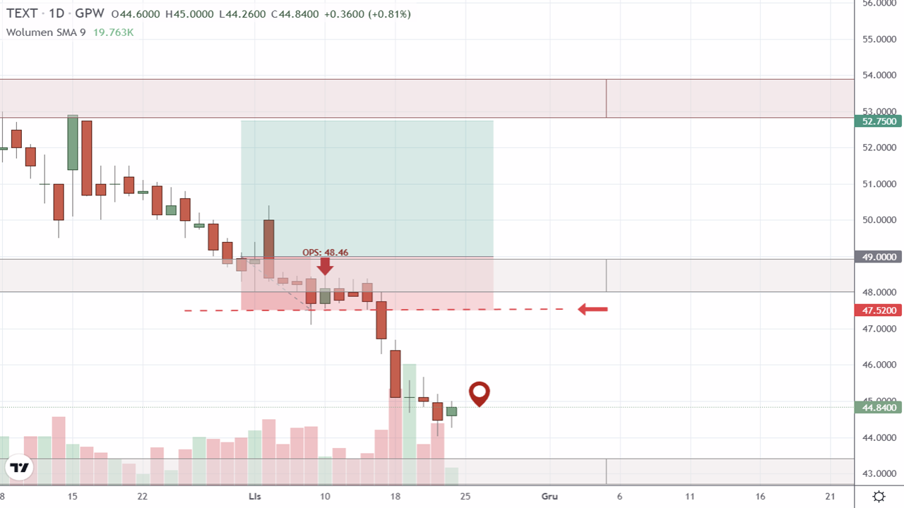 Sprzedaż akcji Text S.A. (TXT:GPW). Zamknięcie pozycji na ustalonym poziomie Stop loss. Transakcja przyniosła stratę -3,02% po 17 dniach.