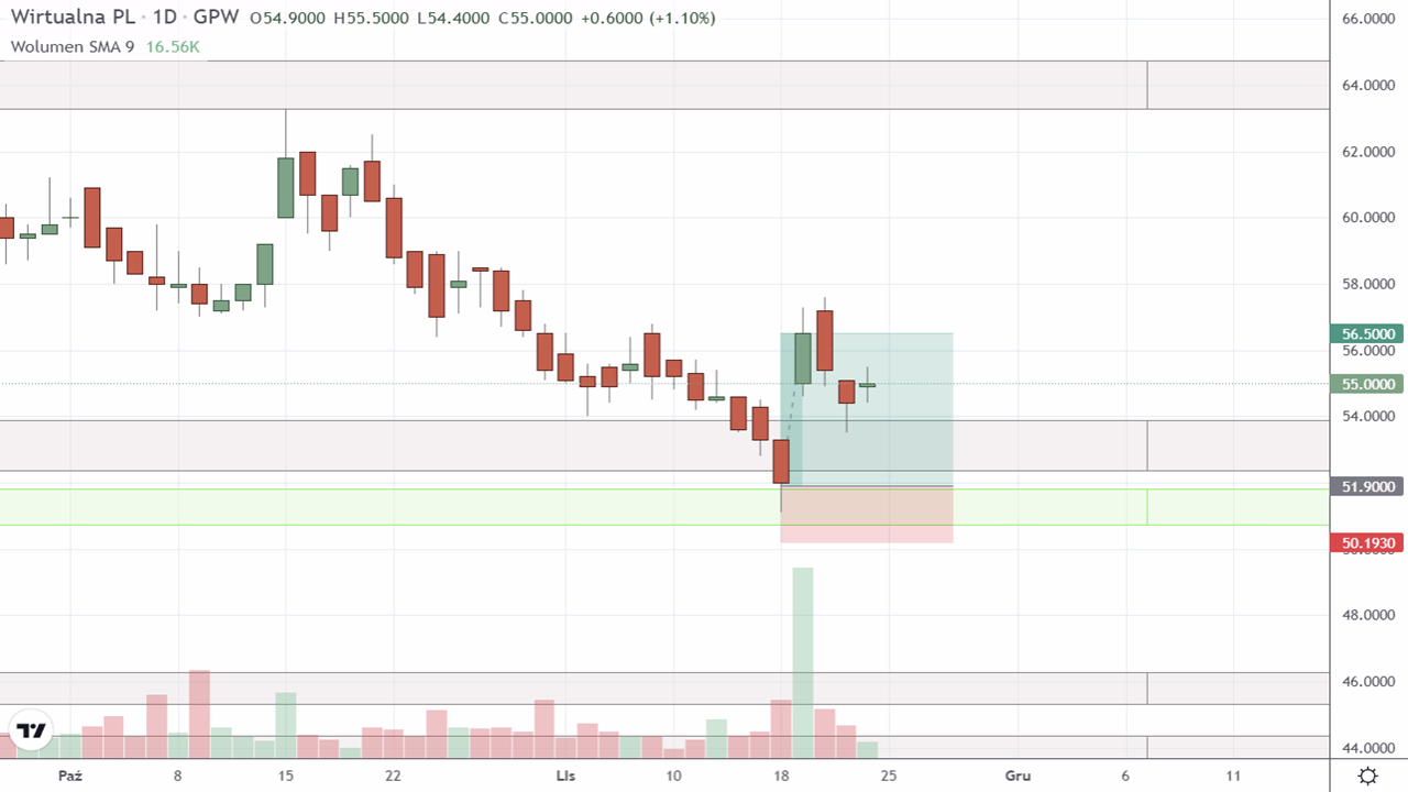 Sprzedaż akcji Wirtualnej Polski S.A. (WPL:GPW). Realizacja zakładanego poziomu Take profit. Transakcja przyniosła 8,86% zysku po 1 dniu.