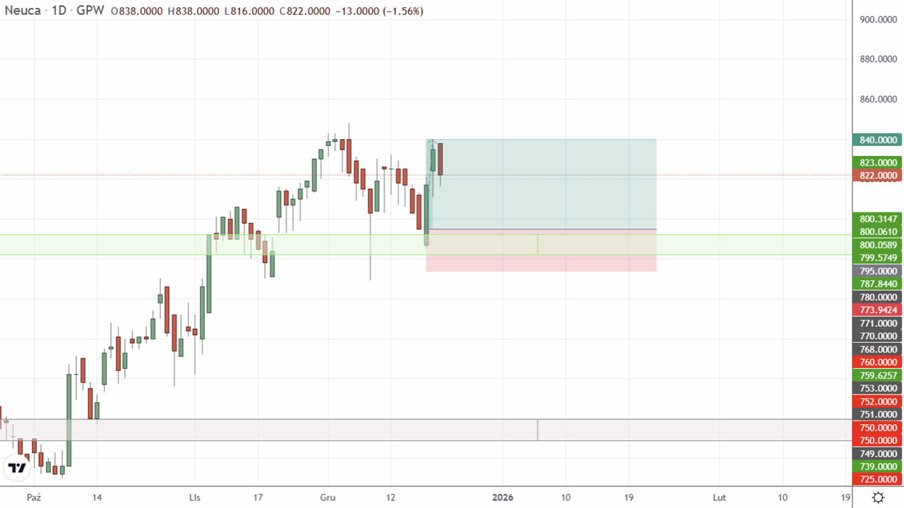 Sprzedaż akcji Neuca S.A. (NEU:GPW). Realizacja zakładanego poziomu Take profit. Transakcja przyniosła 5,66% zysku po 3 dniach.