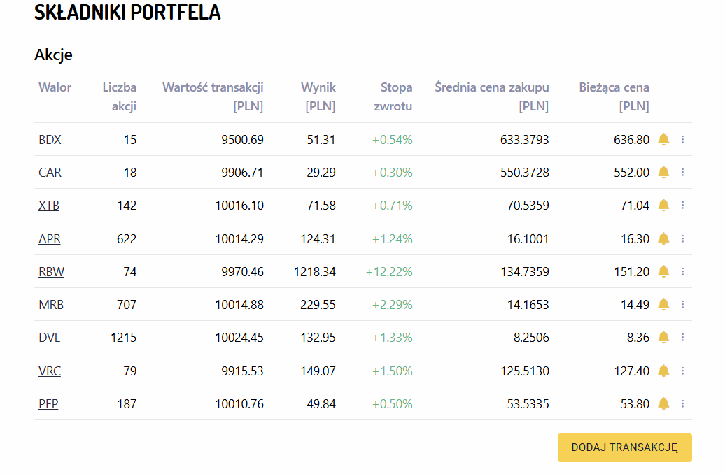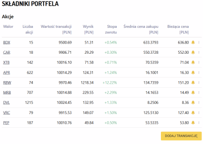 W nadchodzący tydzień wchodzimy, posiadając w portfelu następujące akcje:
