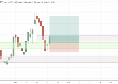 Zrzuty ekranu poniżej przedstawiają transakcje naniesione na wykresy. Na początku 2025 roku zdecydowaliśmy się na pokrycie naszą Strategią wszystkich spółek należących do indeksu WIG20 oraz mWIG40. Jeżeli interesuje Cię strategia Stref Popytu, wiec informacji we wpisie- link.