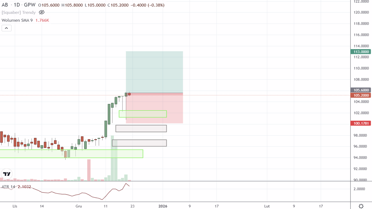Brak transakcji na akcjach AB S.A. (ABE:GPW) z uwagi na zbyt niski stosunek zysku do ryzyka (RR).