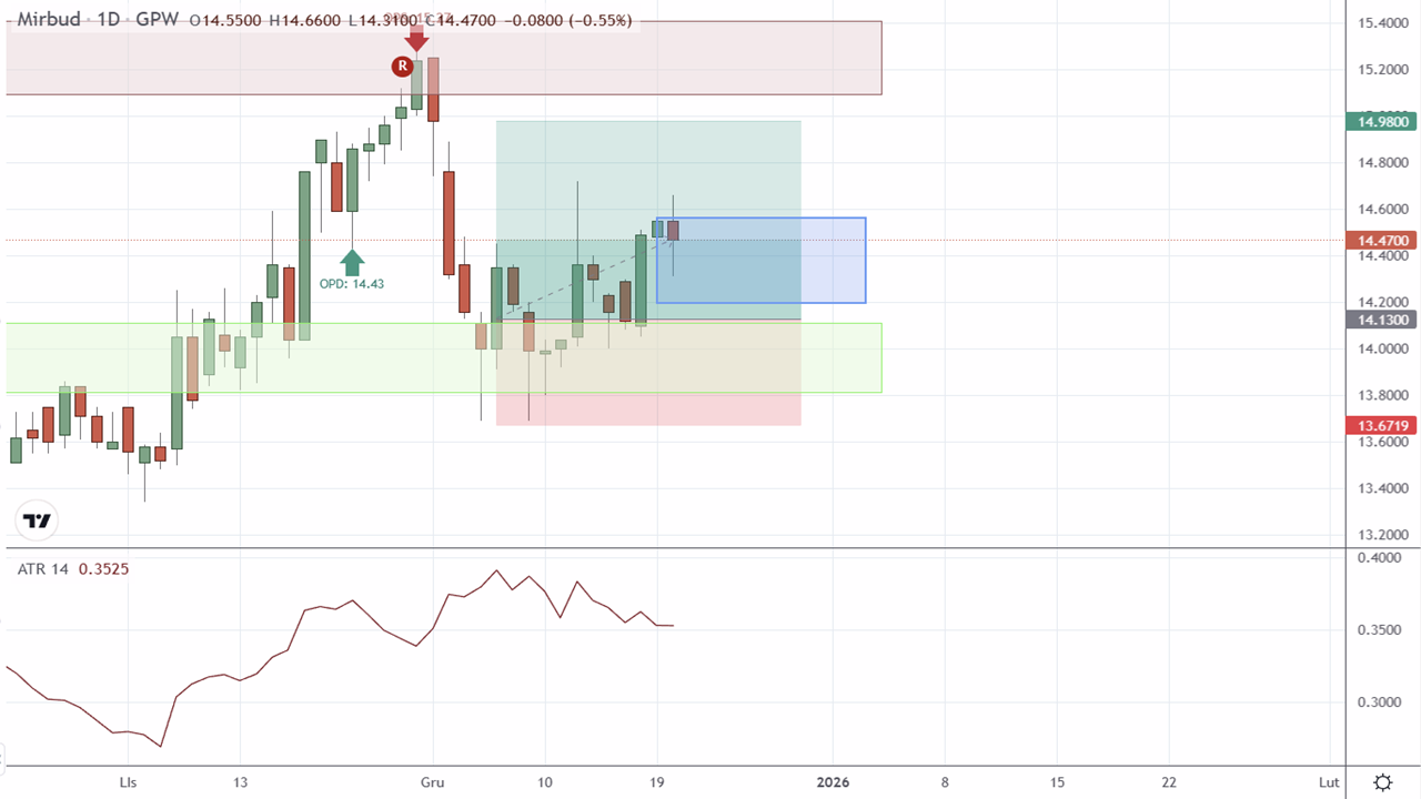 Zabezpieczenie zysku na akcjach Mirbud S.A. (MRB:GPW) za pomocą wskaźnika ATR.