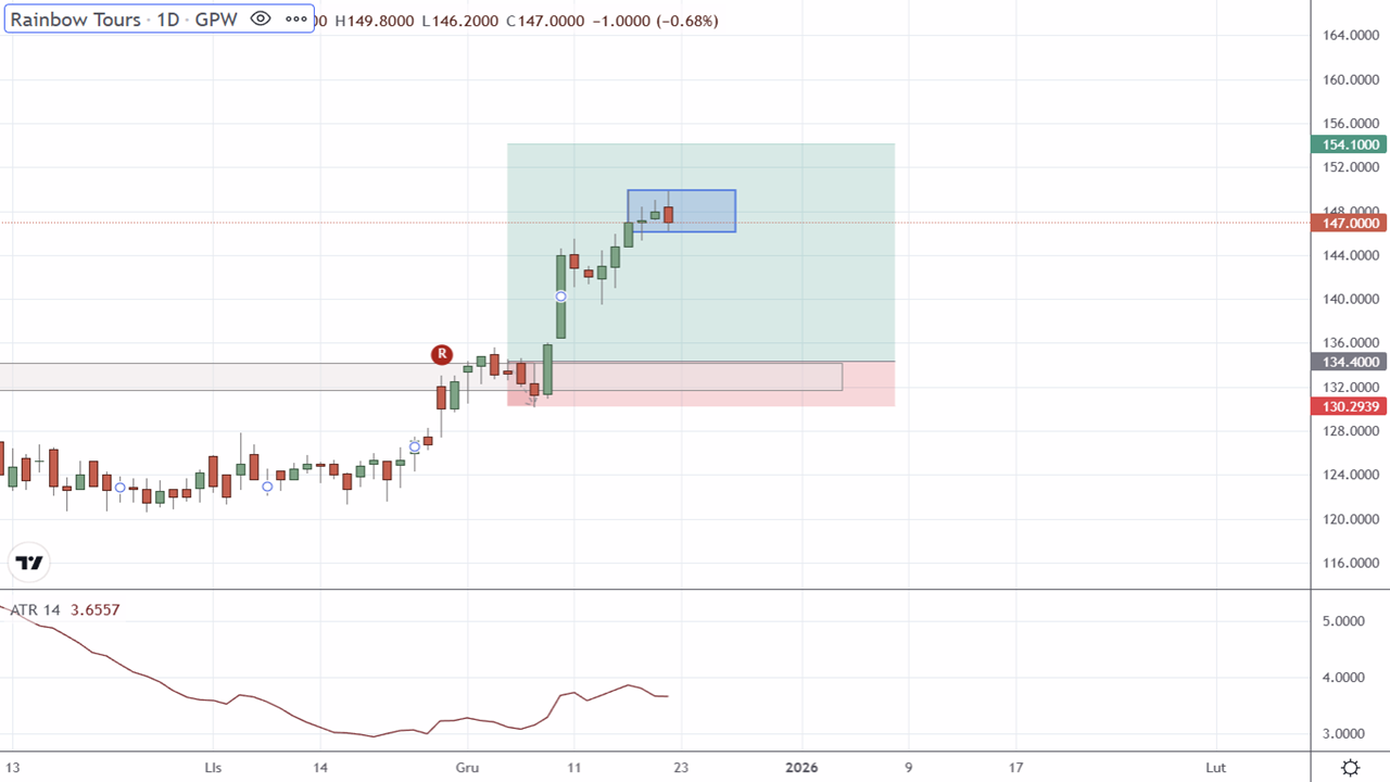 - Rainbow Tours S.A. (RBW:GPW) – pozycja zabezpieczona wskaźnikiem ATR
