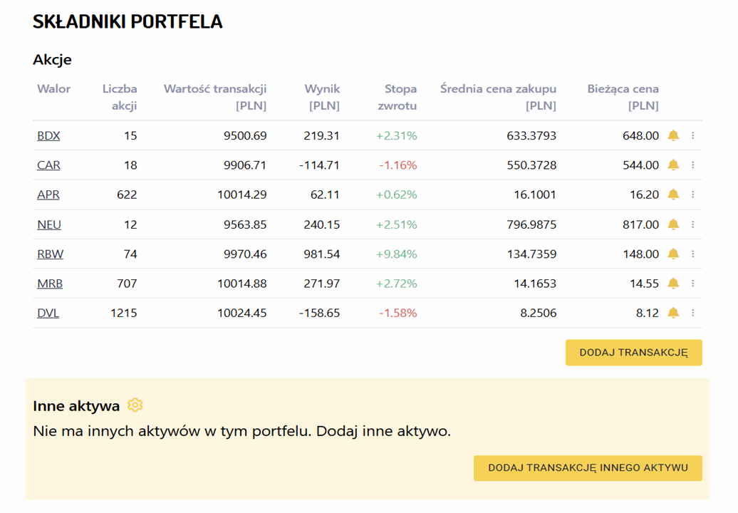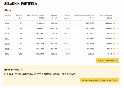 W nadchodzący tydzień wchodzimy, posiadając w portfelu następujące akcje: