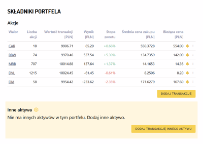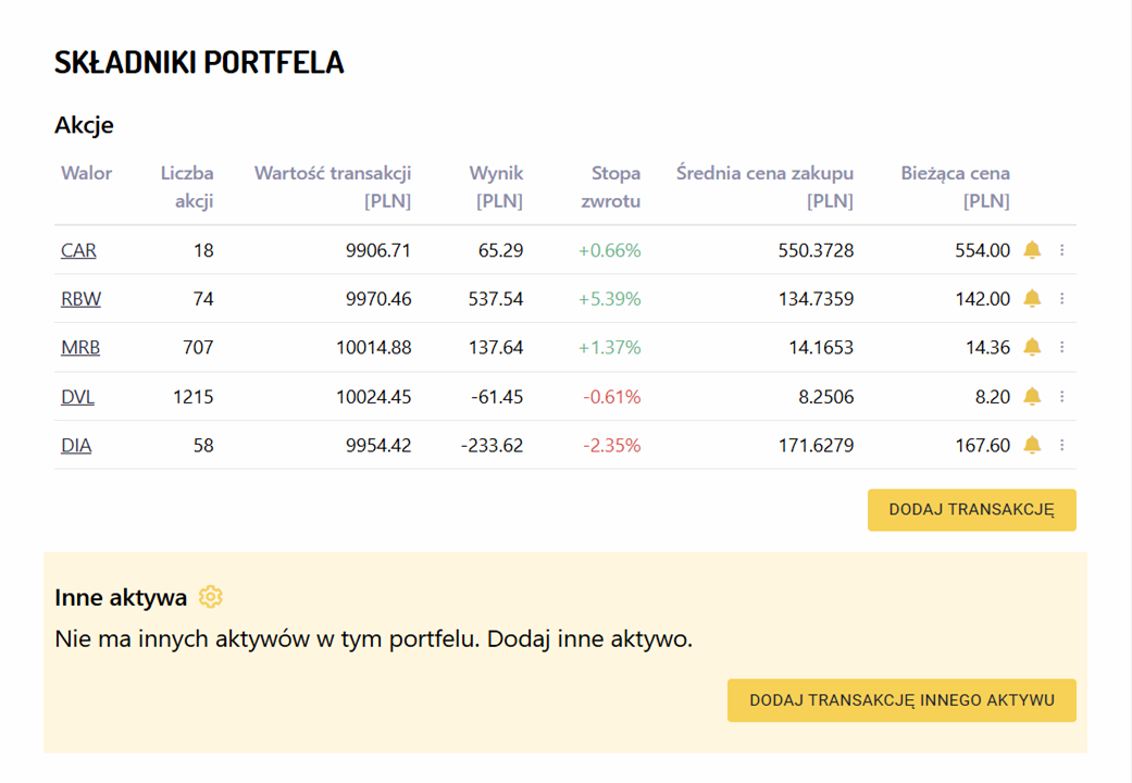 W nadchodzący tydzień wchodzimy, posiadając w portfelu następujące akcje: