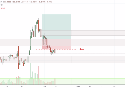 Zrzuty ekranu poniżej przedstawiają transakcje naniesione na wykresy. Na początku 2025 roku zdecydowaliśmy się na pokrycie naszą Strategią wszystkich spółek należących do indeksu WIG20 oraz mWIG40. Jeżeli interesuje Cię strategia Stref Popytu, wiec informacji we wpisie- link.