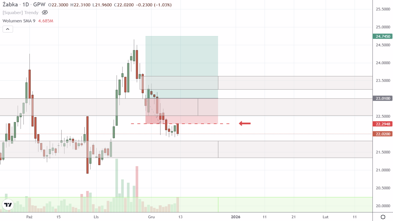412. tydzień Stref Popytu przyniósł 3 sygnały reakcji na strefę popytu Squabera. Wszystkie z nich zostały wykorzystane do przeprowadzenia transakcji kupna. Akcje Zabka Group S.A. (ZAB:GPW), z którymi rozpoczynaliśmy tydzień, opuściły portfel, przynosząc stratę. Zyskowne natomiast okazały się pozycje na akcjach Tauron Polska Energia S.A. (TPE:GPW) oraz AB S.A. (ABE:GPW).