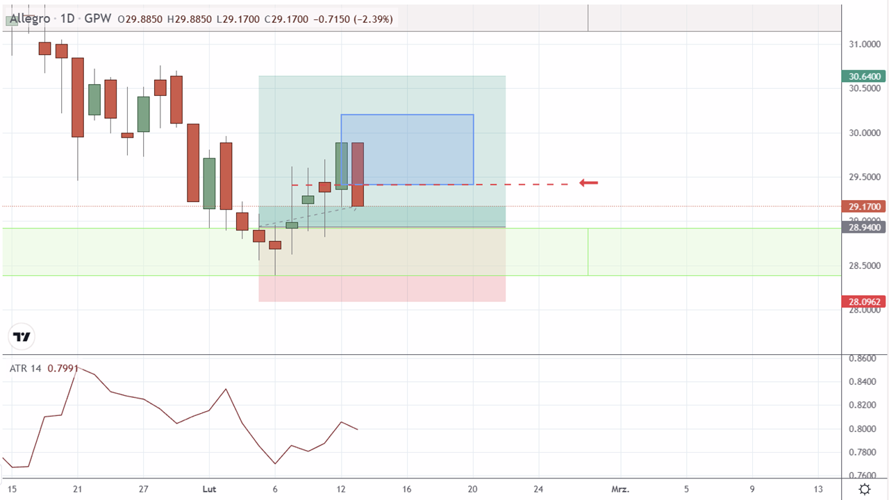 Zabezpieczenie zysku na akcjach Allegro (ALE:GPW) za pomocą wskaźnika ATR.