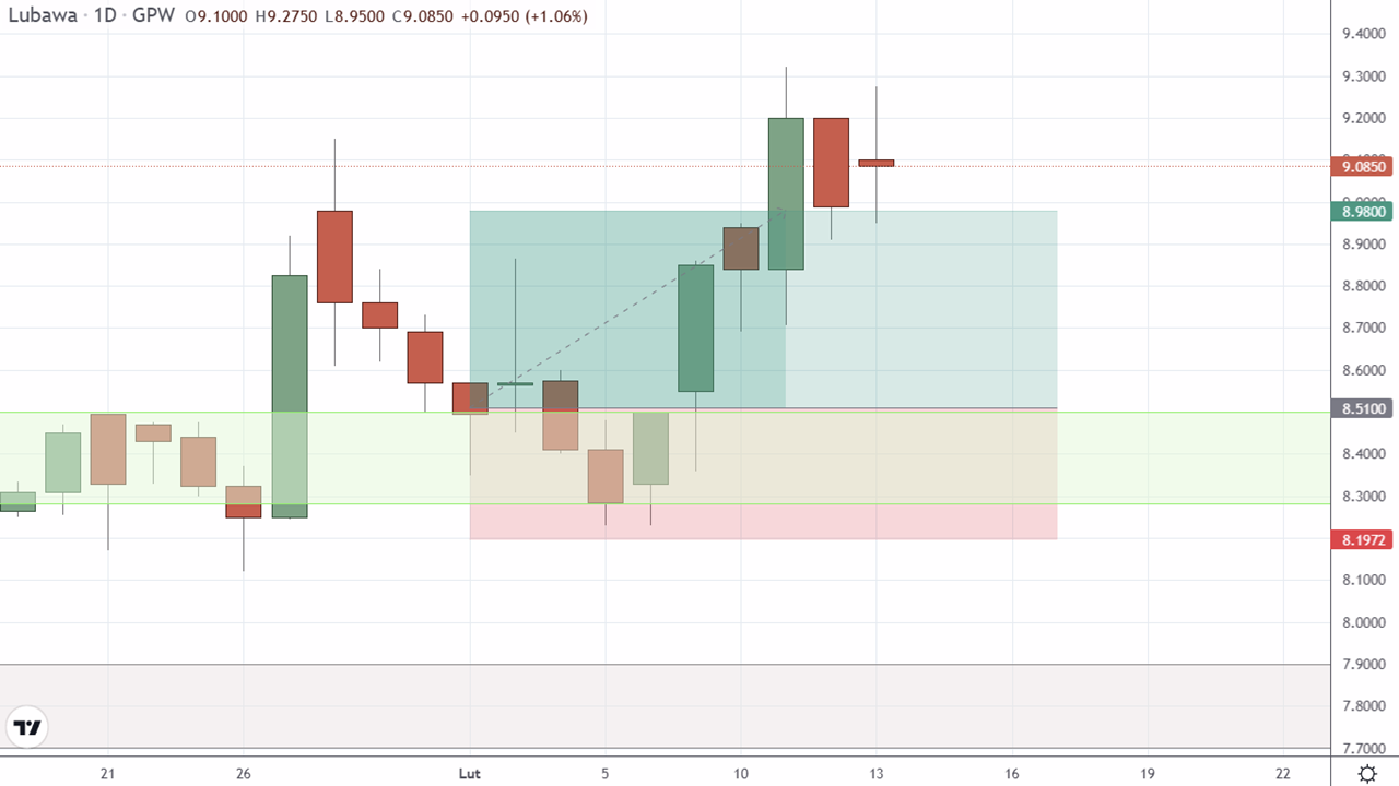 Sprzedaż akcji Lubawa S.A. (LBW:GPW). Realizacja zakładanego poziomu Take profit. Transakcja przyniosła 5,52% zysku po 9 dniach.