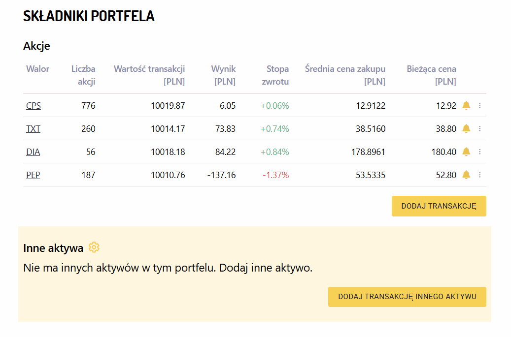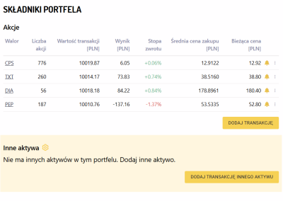 W nadchodzący tydzień wchodzimy, posiadając w portfelu następujące akcje: