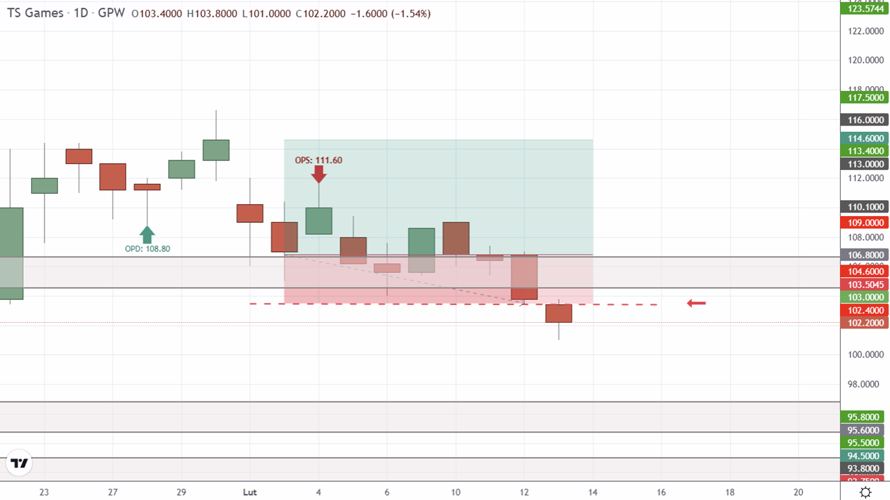 Sprzedaż akcji Ten Square Games S.A. (TEN:GPW). Zamknięcie pozycji na ustalonym poziomie Stop loss. Transakcja przyniosła stratę -3,09% po 10 dniach.