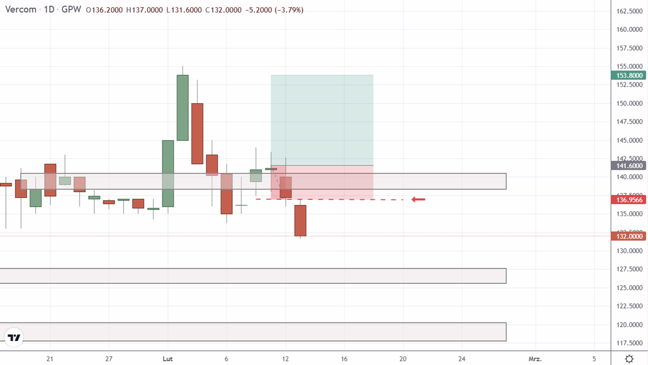 Sprzedaż akcji Vercom S.A. (VRC:GPW). Zamknięcie pozycji na ustalonym poziomie Stop loss. Transakcja przyniosła stratę -3,28% po 1 dniu.