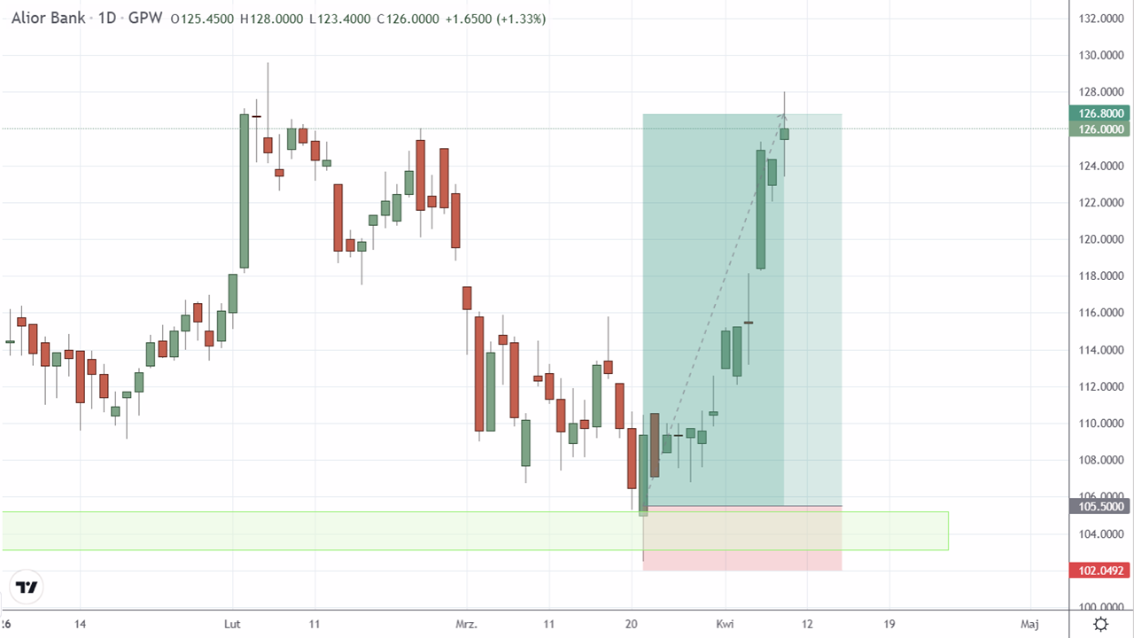 Sprzedaż akcji Alior Banku S.A. (ALR:GPW). Realizacja zakładanego poziomu Take profit. Transakcja przyniosła 20,19% zysku po 18 dniach.