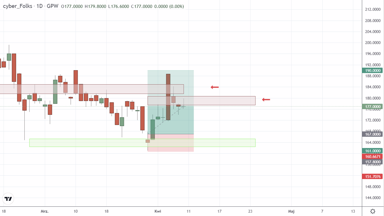 Sprzedaż akcji cyber_Folks S.A. (CBF:GPW). Zamknięcie pozycji z powodu aktywacji strefy podaży Squabera. Transakcja przyniosła 10,30% zysku po 9 dniach.