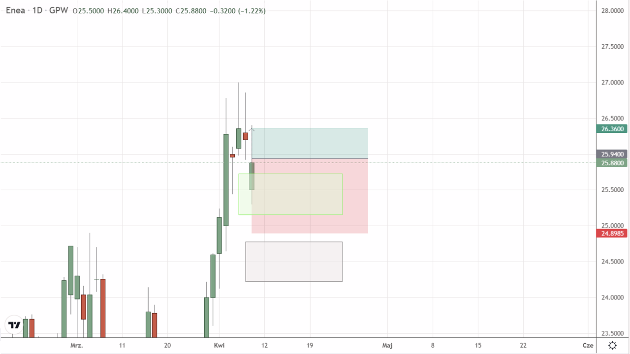 Brak transakcji na akcjach Enea S.A. (ENA:GPW) z uwagi na zbyt bliską odległość do aktywnej strefy podaży Squabera.