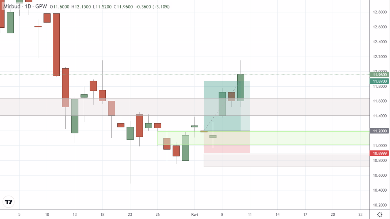 Sprzedaż akcji Mirbud S.A. (MRB:GPW). Realizacja zakładanego poziomu Take profit. Transakcja przyniosła 5,98% zysku po 8 dniach.